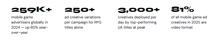 The market has matured past the land-grab phase. Downloads are down year-over-year but revenue keeps climbing. That means competition for quality users is fiercer than ever, CPIs keep rising, and creative fatigue hits faster than it used to. The old playbook - produce a handful of hero creatives, run them until they die, repeat simply doesn't hold up anymore.